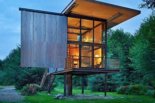 Olson Kundig Architects’ Prefab Sol Duc Cabin Rests Lightly on Four Stilts | Inhabitat – Sustainable Design Innovation, Eco Architecture, Green Building